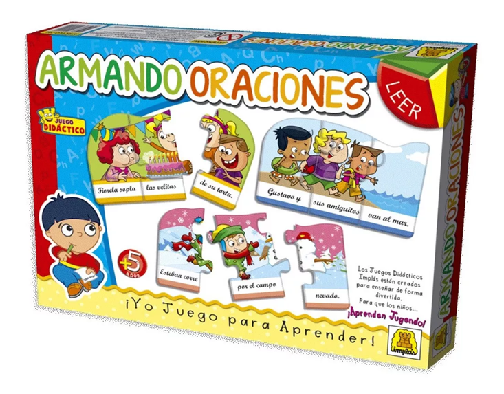 Es un juego de encastre y asociación donde los niños aprenden a leer y armar oraciones uniendo las figuras. Los juegos didácticos están creados para enseñar de forma divertida para que los niños aprendan jugando