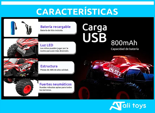 - Los controles remotos de 2,4 GHz y los neumáticos de goma con diseño antideslizante hacen que el coche RC sea fácil de conducir a largas distancias en césped, arena y caminos irregulares.
