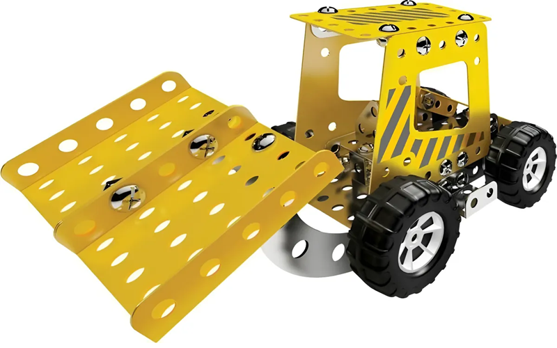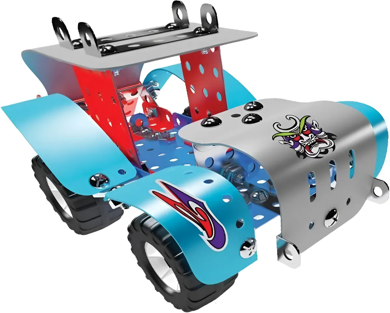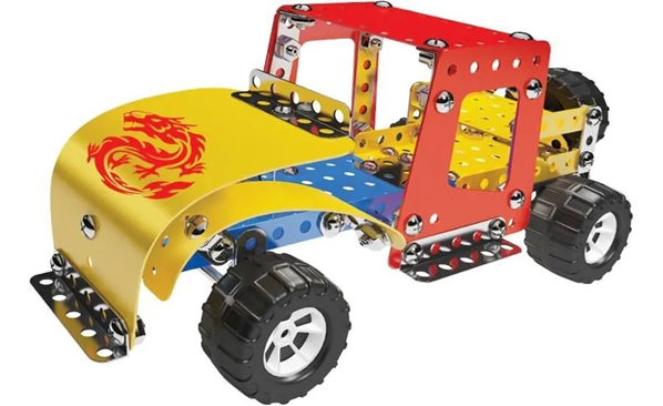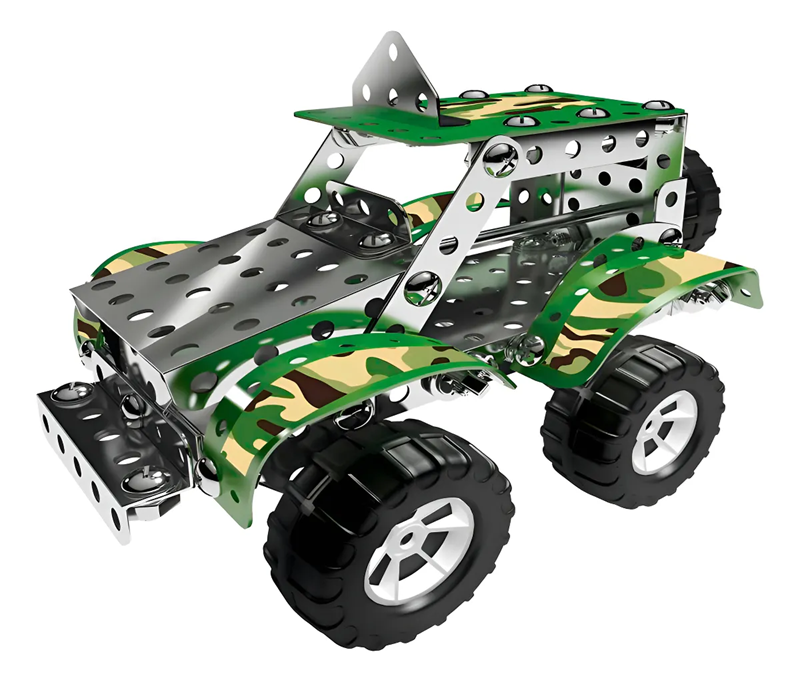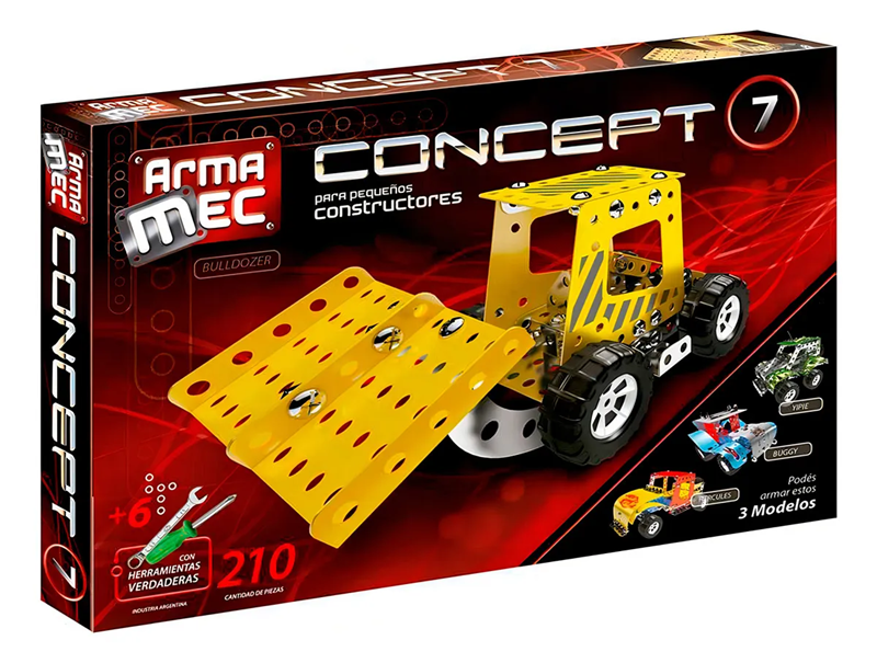 Construye tu propia colección y experimenta la ingeniería. Set pequeño ingeniero. Crea un Bulldozer con la guía de construcción o crea tus propios inventos. Contiene Herramientas reales. Sistema constructivo de pequeñas piezas metálicas unidas por tuercas y tornillos. Este modelo permite armar: BULLDOZER-YIPIE-BUGGY-HERCULES. Caja contenedora con 210 piezas. Incluye llave y destornillador. Se puede hacer un modelo a la vez. Recomendado para niños mayores de 8 años.