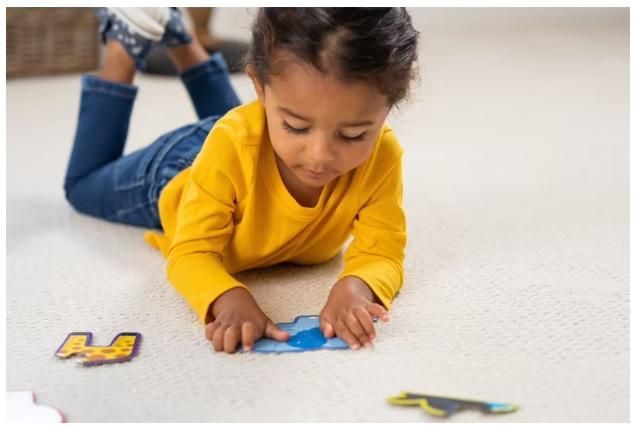 El rompecabezas Let's Begin de Crocodile Creek contiene diez rompecabezas diferentes de 2 piezas que están codificados por colores en la parte posterior para una fácil clasificación y coincidencia de colores.