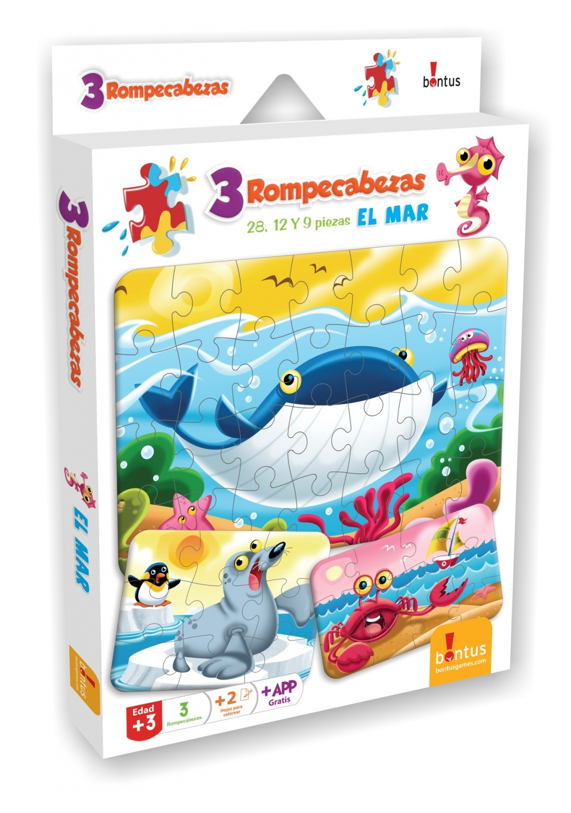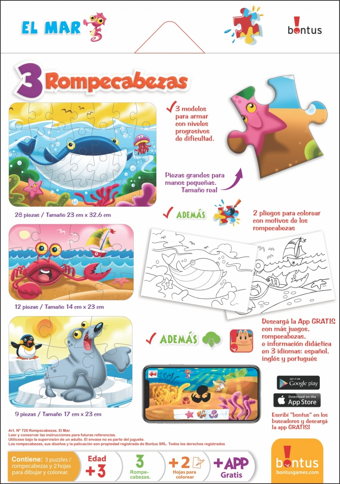 3 Puzzles/ rompecabezas y 2 hojas para dibujar y colorear