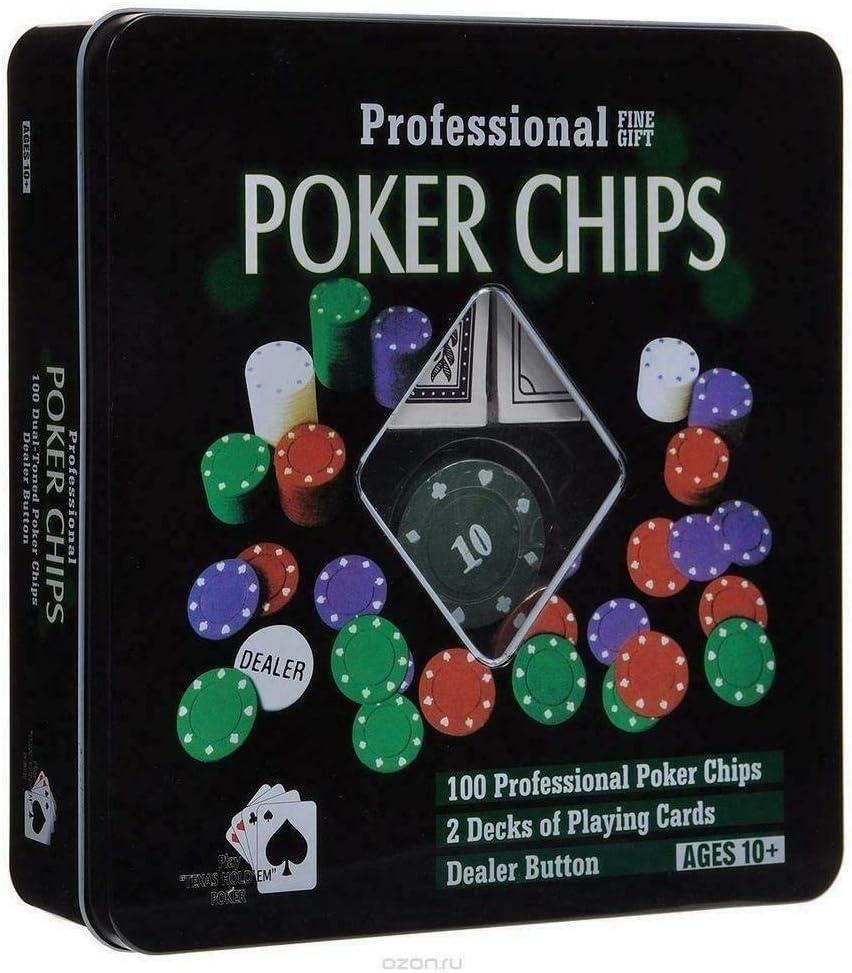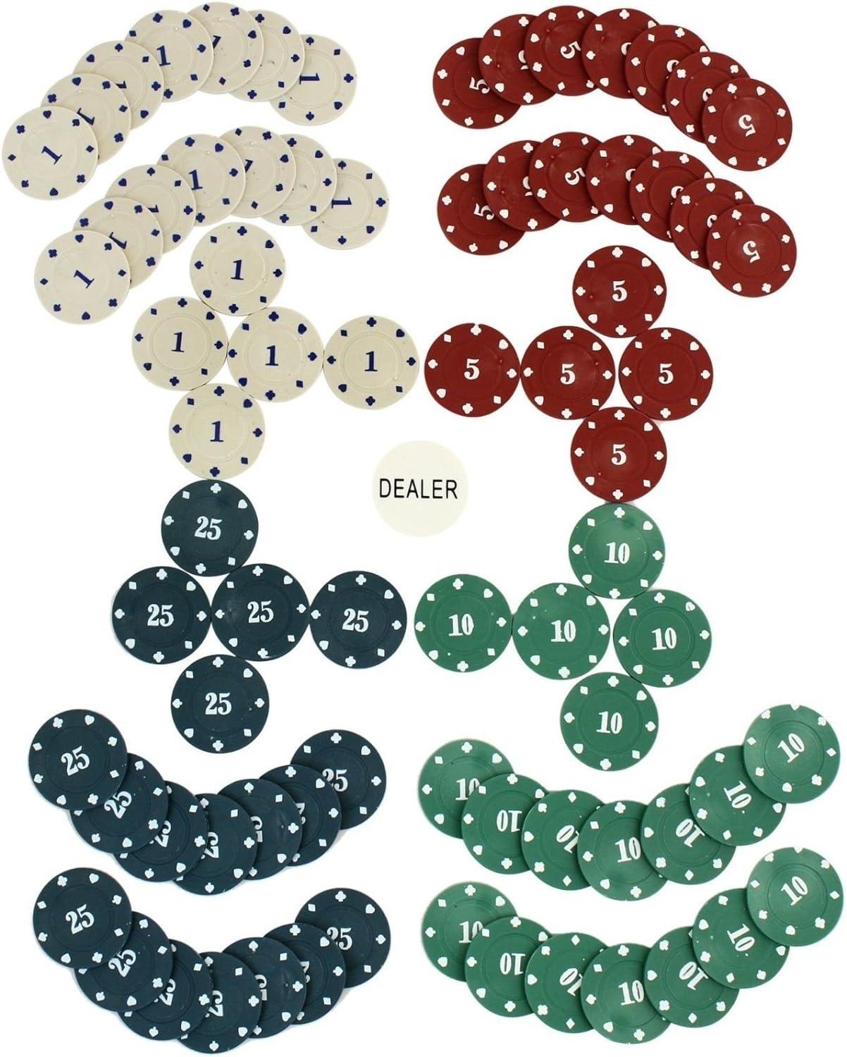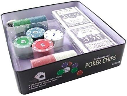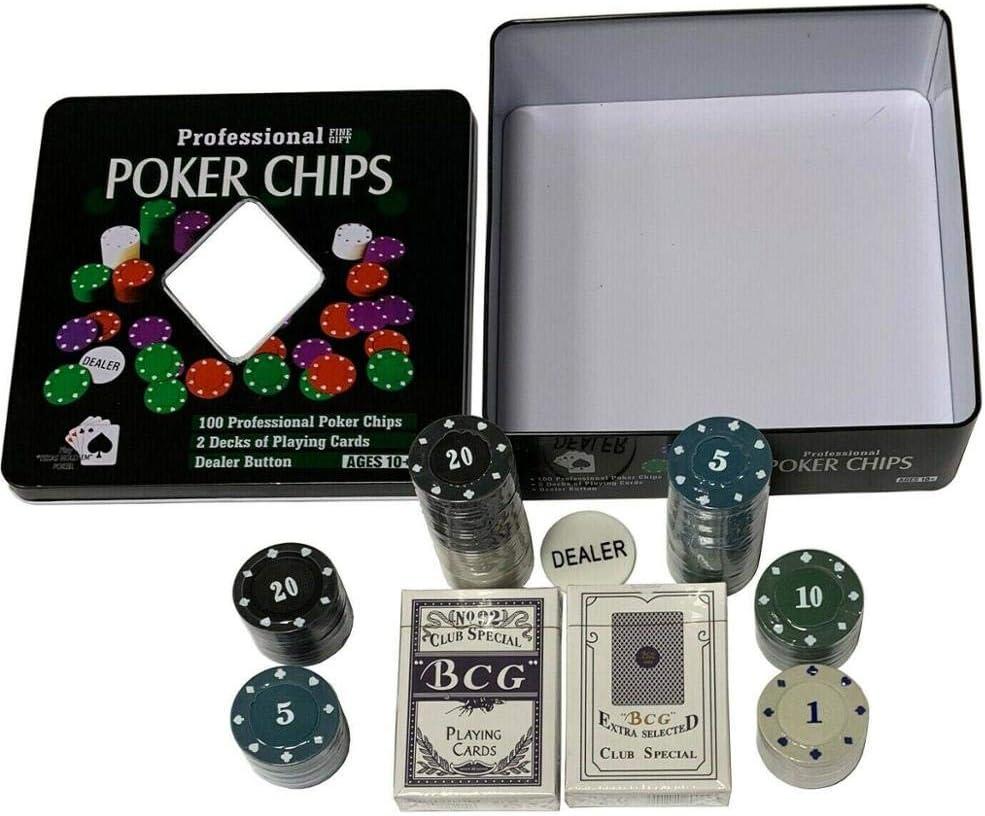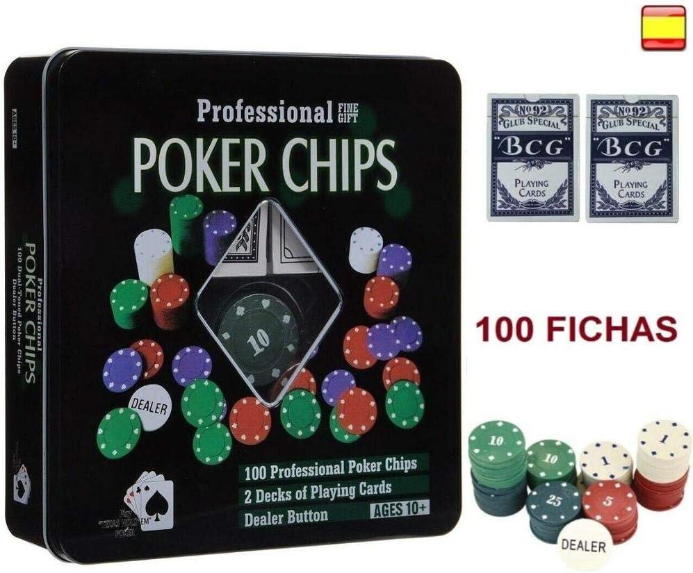 • Incluye 100 fichas del tamaño de un casino y dos naipes.