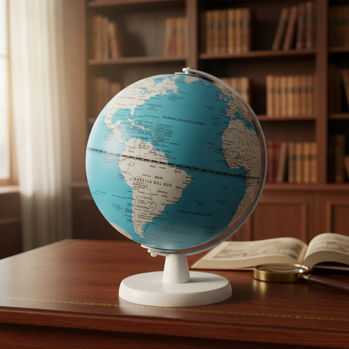 El Globo Terráqueo O 20cm Base Madera Con luz USB - Zeus de la marca Glotter es una pieza ideal para quienes buscan combinar educación y decoración en su espacio. Con un diseño elegante y moderno, este globo de mesa se convierte en un elemento atractivo para oficinas, salas de estudio o habitaciones. Fabricado en plástico de alta calidad, su mapa político ofrece una representación clara y precisa de los continentes y países. La base de madera aporta un toque de sofisticación, mientras que su altura de 30 cm y diámetro de 20 cm lo hacen perfecto para cualquier superficie. La iluminación LED integrada, que se alimenta a través de USB, permite que el globo brille suavemente, creando un ambiente acogedor y atractivo. Este detalle no solo realza su belleza, sino que también lo convierte en un excelente recurso para aprender sobre geografía de manera visual y entretenida. Ideal para estudiantes, profesionales o amantes de la geografía, el Globo Terráqueo Zeus es más que un simple objeto decorativo; es una herramienta que inspira curiosidad y conocimiento. Añade un toque distintivo a tu espacio y disfruta de la belleza del mundo en la palma de tu mano.