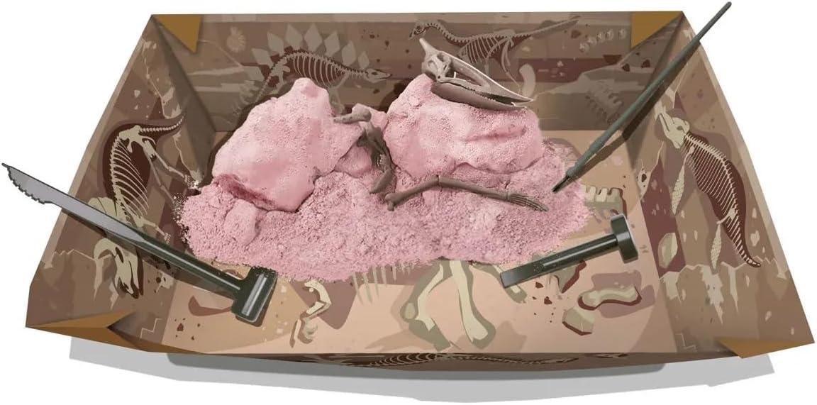 Este kit contiene todo lo que necesitas: 1 bloque de yeso con esqueleto incrustado, 1 bandeja de excavación de papel, 1 pestaña adhesiva para colocar las juntas, 1 martillo, 1 cincel, 1 cepillo e instrucciones detalladas (idioma español no garantizado).