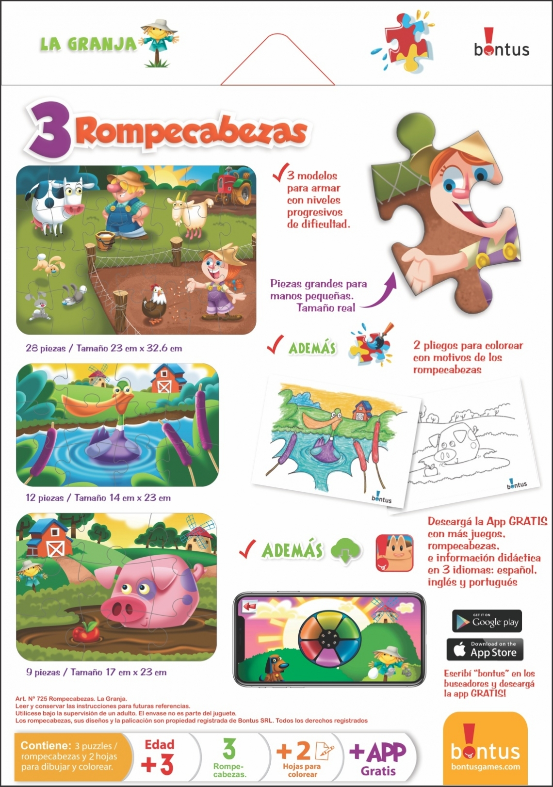 3 Puzzles/ rompecabezas y 2 hojas para dibujar y colorear