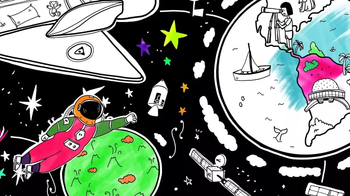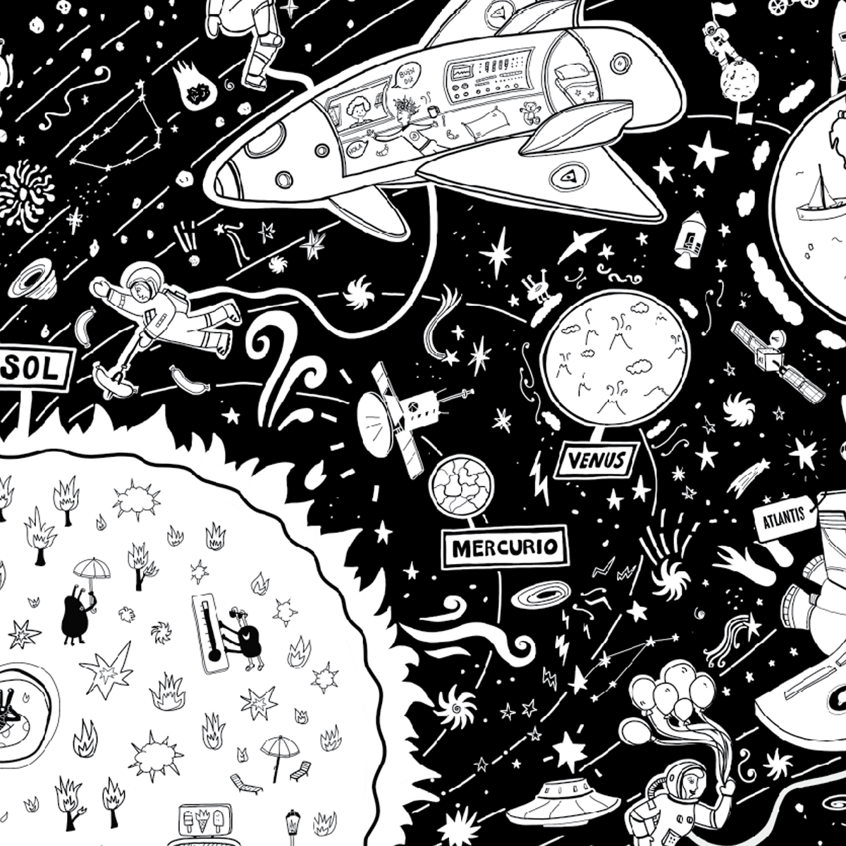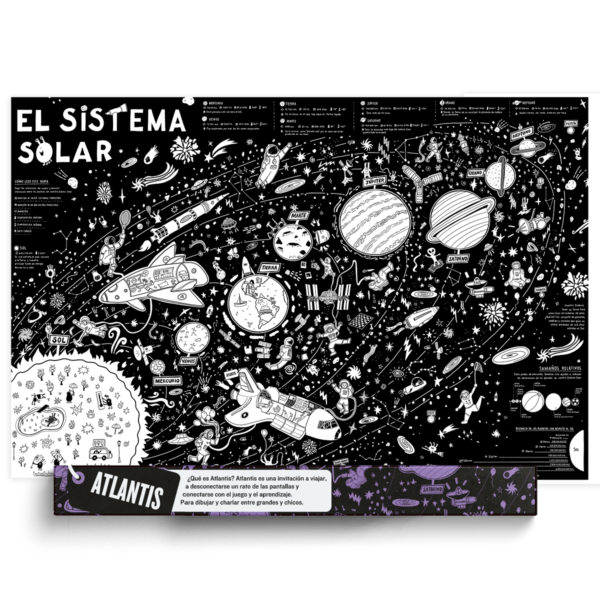 Este proyecto fue pensado por Juan Minujín contiene una lámina del sistema solar para pintar de 90 x 60 cm. Incluye información sobre todo el sistema solar