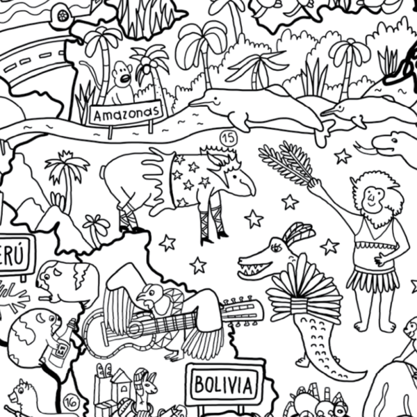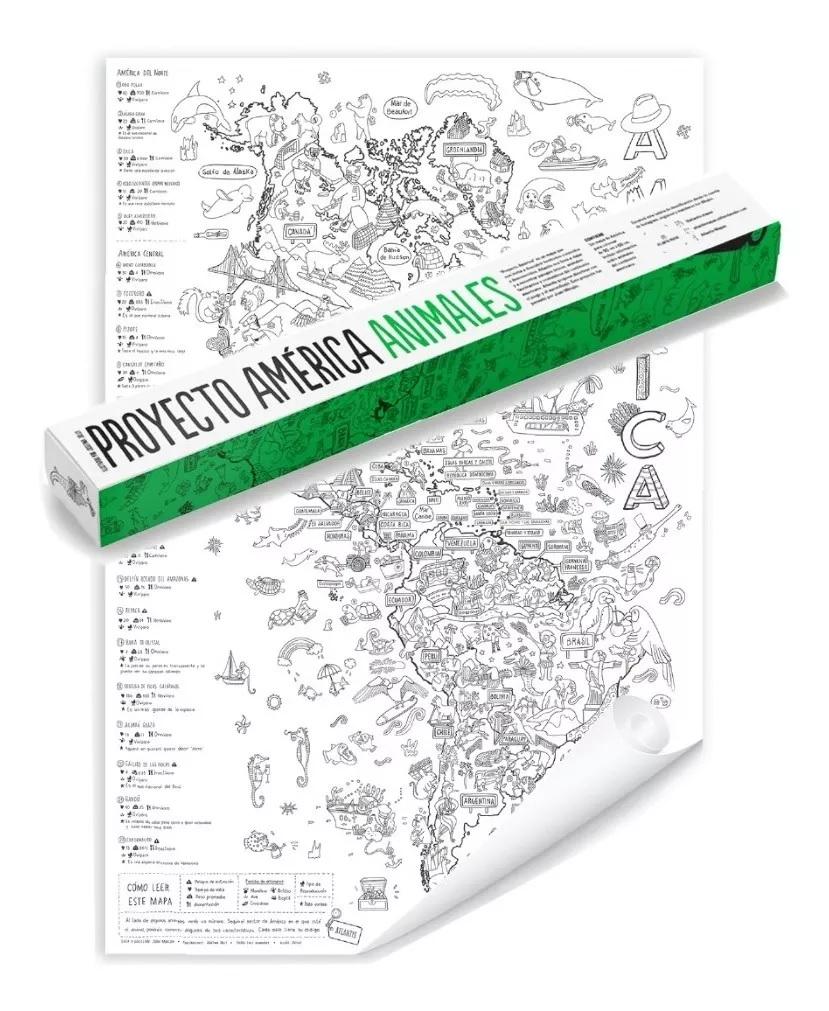 El Proyecto América Animales es un mapa gigante de América para colorear, que nos muestra la fauna representativa de sus 35 países.