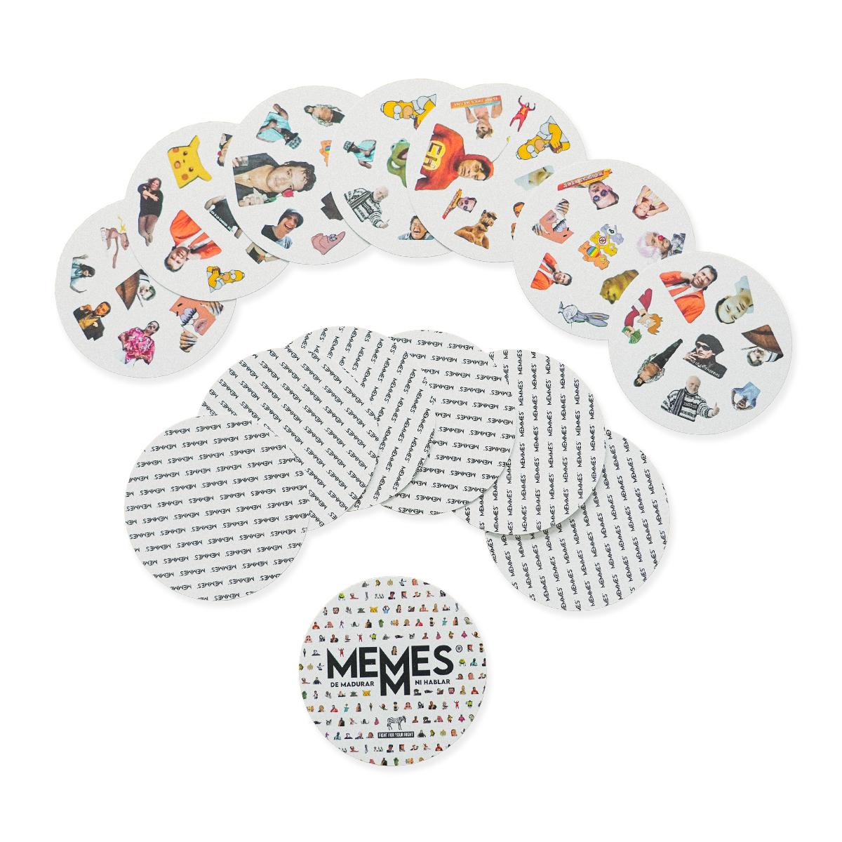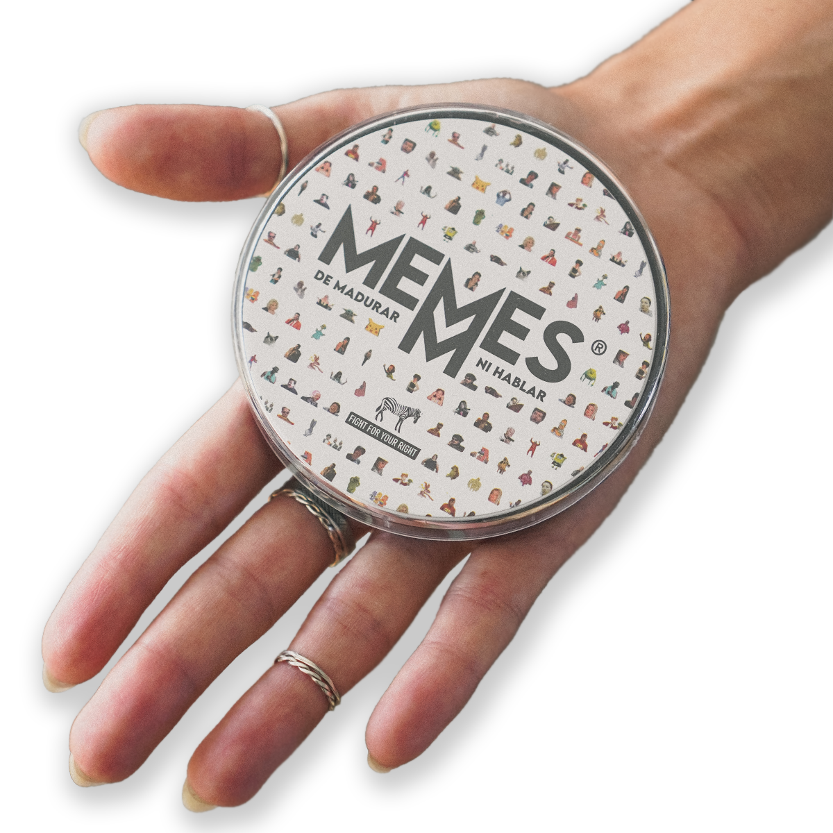 Memmes incluye 55 cartas y cada una de ellas contiene ocho memes. No te preguntes cómo, pero entre dos cartas, siempre hay un meme que se repite. Si, leíste bien, uno, siempre!