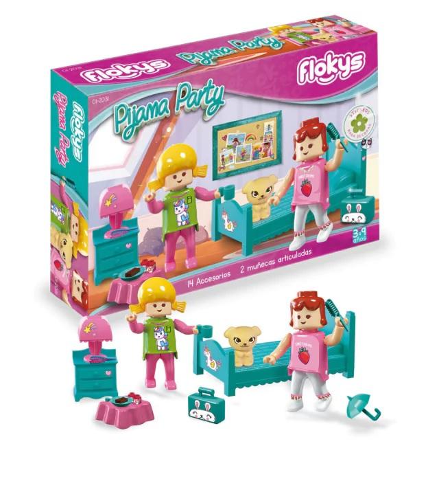 Incluye 2 personajes articulados de 7,5 cm, muebles, 14 accesorios y stickers para decorar!