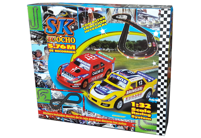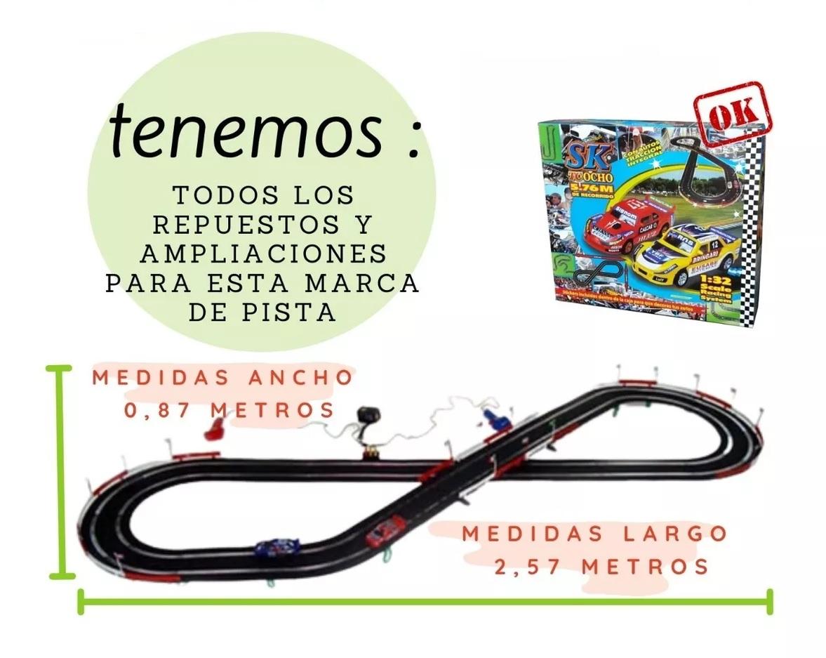 Pista Scalextric para autos escala 1/32 de la marca argentina SK, compatibles con el anclaje clásico de Scalextric.
