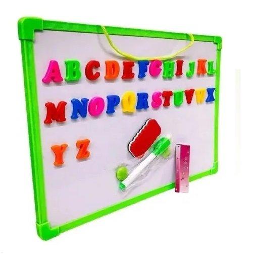 Incluye 26 letras con imanes- 2 tizas un marcador y un borrador.