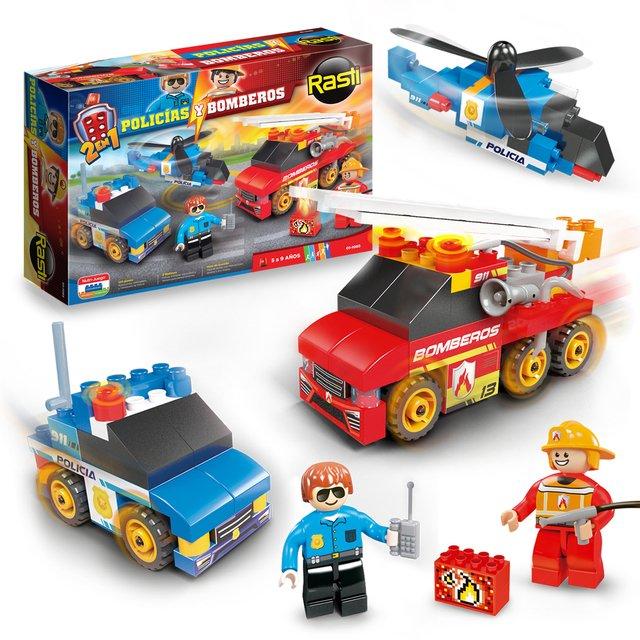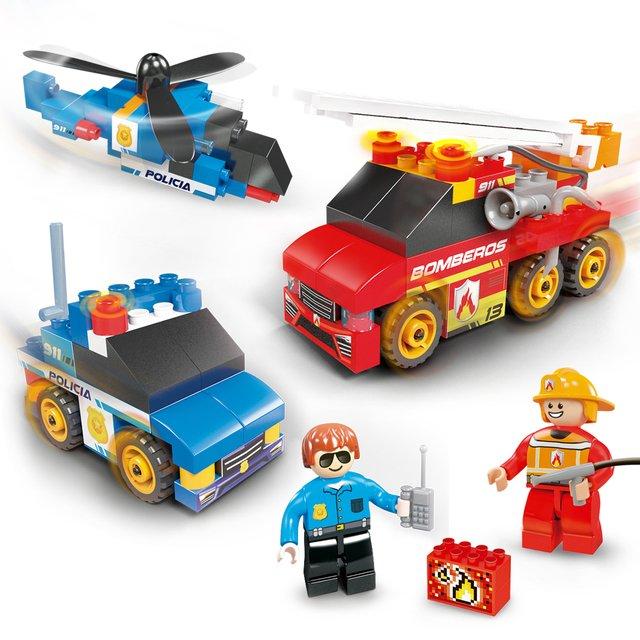- Lanzamos un pack donde podrás armar 3 de los mejores vehículos: el autobomba, el patrullero y el helicóptero de Policía. Contiene también dos personajes y accesorios.