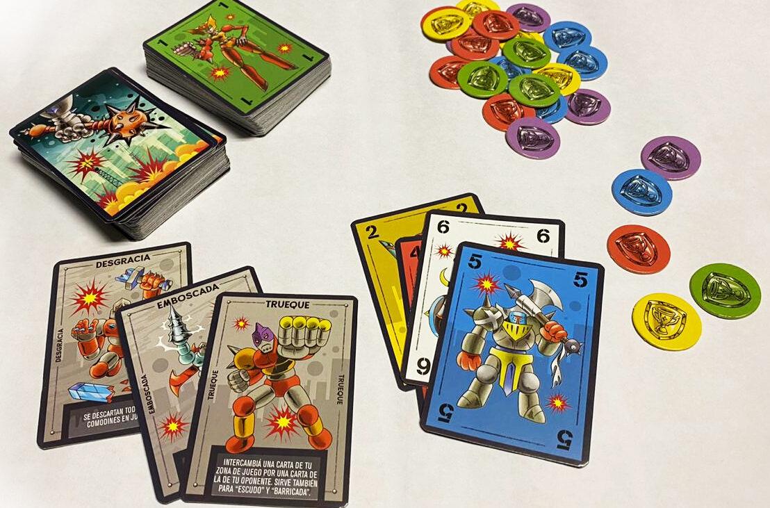 Las cartas tienen 5 colores (armas) que, junto con cartas de acción y comodines, se usan para pelear cada batalla e intentar ganar ese trofeo. Quién primero consiga el objetivo será el ganador.