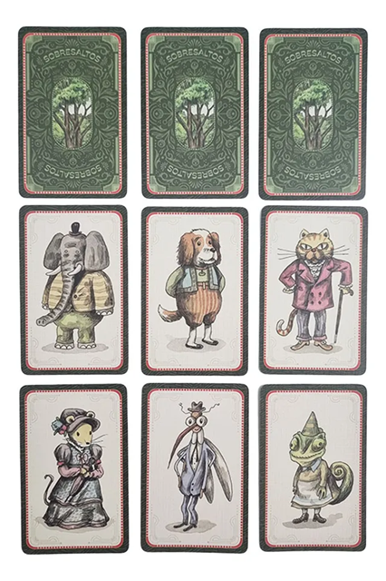 No hay reyes en este bosque... hay animales cuya valentía - o miedo - depende de la ocasión. En cada enfrentamiento UN ANIMAL SE ASUSTA. El perro asusta al gato que asusta al ratón que asusta al elefante que asusta al perro que asusta al gato.... APÚRATE A ENCONTRAR EL ANIMAL ASUSTADO. Si eres el primero, te lo llevas! Pero si ninguno se asusta, deberás hacerlo tú!!! Los ruidos para asustar son: GUAU - MIAU - CHIKI CHIKI - BÚ Practica los sonidos de animales y los reflejos, prepárate para un juego RÁPIDO, RUIDOSO Y LLENO DE SOBRESALTOS. Jugadores: 2 a 6 Edad: 6 a 99 años Tiempo: 15 minutos