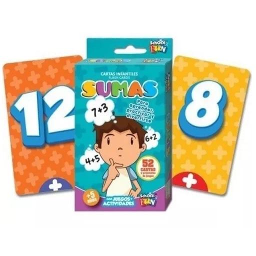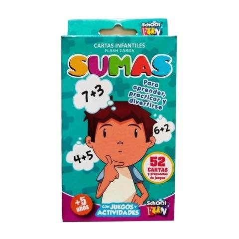 52 cartas infantiles ilustradas y 3 cartas con reglamentos de juegos y consejos.