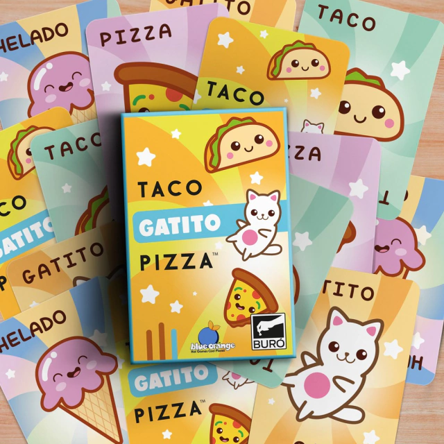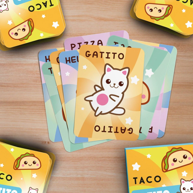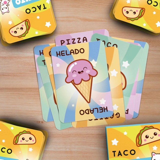 Primero, tenés que decir en voz alta una de las tres palabras del nombre del juego (la que quieras: taco, gatito o pizza) y después tenés que dar vuelta tu carta.