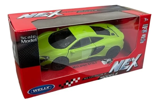 Sumérgete en el mundo de los vehículos en miniatura con este espectacular McLaren 675LT Coupe a escala 1:34, fabricado por Welly.