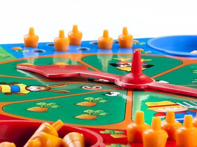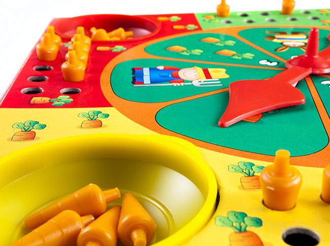 Haciendo girar la flecha del tablero por turno, deberá jugar tomando la cantidad de zanahorias indicada por la flecha para colocarlas en su cesta o para devolverlas a la huerta.